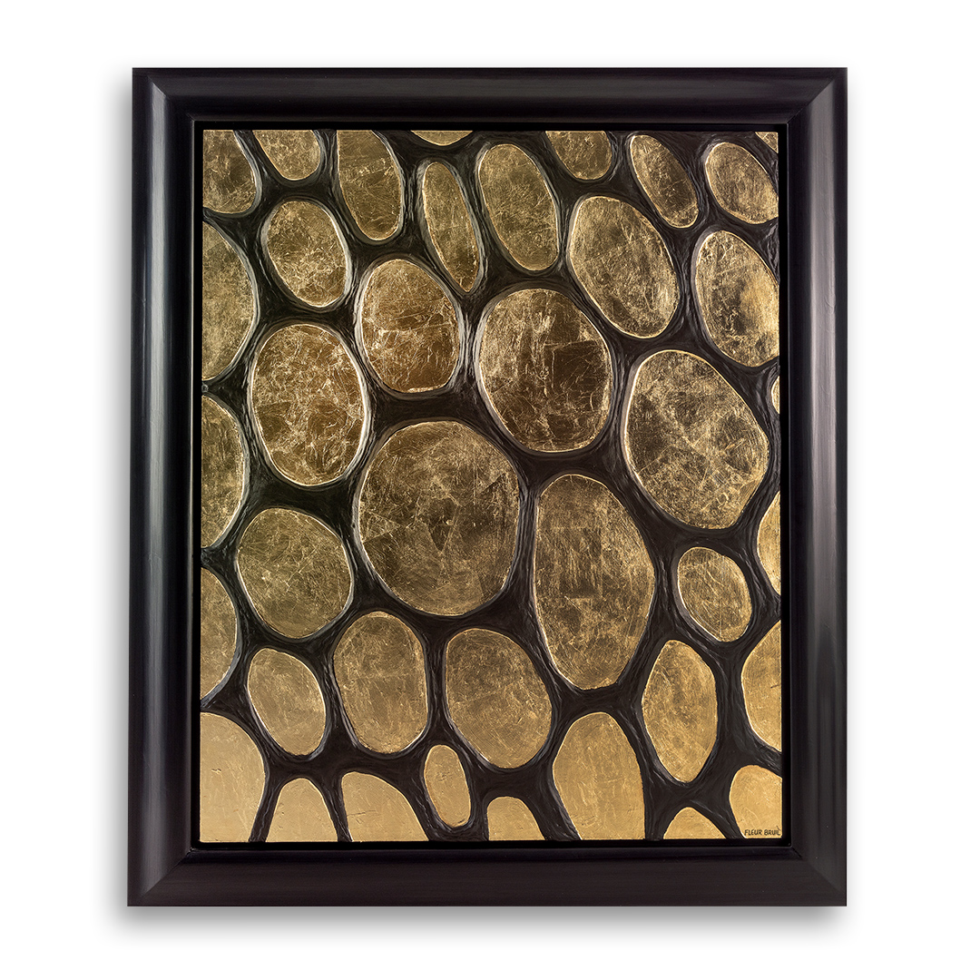 This work grew out of my fascination with how stillness and beauty can fill a space. The round, organic shapes and earthy tones bring calm and balance, while the gold accents add a sophisticated sheen.